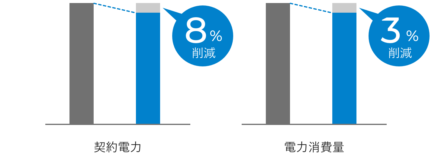 全体の結果:契約電力を8%削減、電力消費量を3%削減