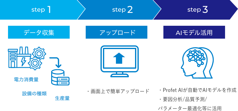 製造業向けAIプラットフォーム「Profet AI」を活用して、データを分析。主要な消費要因を特定し、契約電力の最適化やピークシフト、省エネ運転といった対策を実行した。